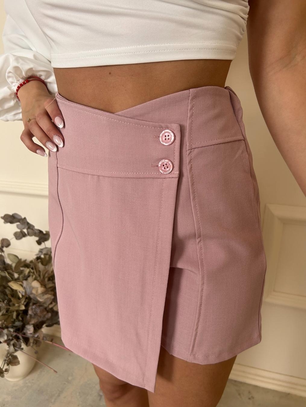 Materiałowe spódniczko-spodenki, które emanują elegancją. Zdobione dwoma guzikami dodają subtelności i klasy całej stylizacji. Ich różowy kolor sprawia, że są idealnym wyborem na wiele okazji. Te spódniczko-spodenki to połączenie wygody i stylu, które uzupełni Twój look w każdej sytuacji.