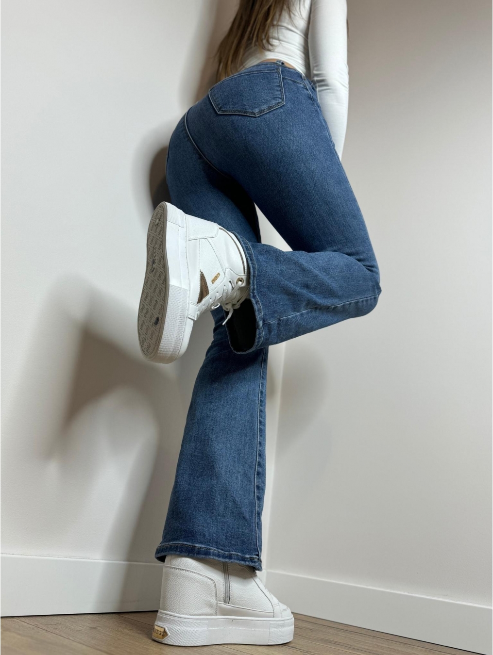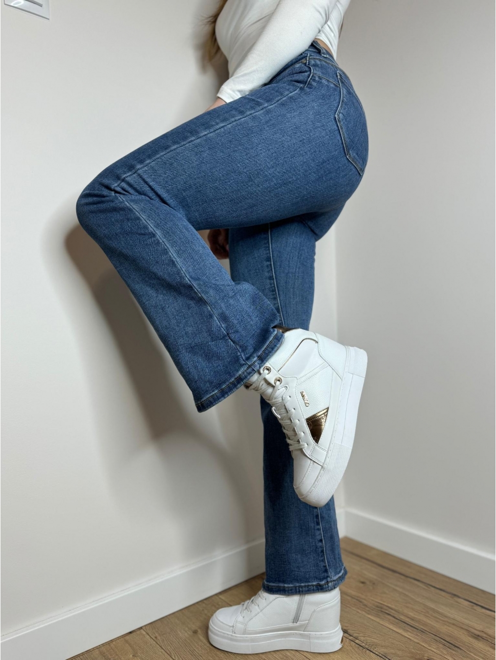 Te jeansy zostały stworzone, aby modelować Twoją sylwetkę i zapewnić Ci wygodę przez cały dzień. Wykonane z rozciągliwego materiału, idealnie dopasowują się do Twojego ciała, jednocześnie zachowując swobodę ruchów. Ich efekt "push up" nadaje dodatkowej formy, podnosząc i podkreślając atuty Twojej figury. Rozszerzane nogawki dodają wyjątkowego charakteru każdej stylizacji, sprawiając, że te jeansy są zarówno modnym, jak i praktycznym wyborem na wiele okazji. Ich modelujący efekt jest niezastąpiony, dodając Ci pewności siebie i wyrafinowania. Teraz możesz cieszyć się świetnym wyglądem, komfortem i unikalnym stylem.